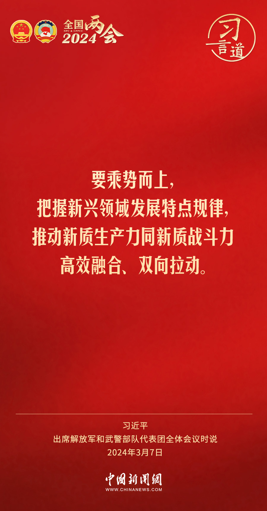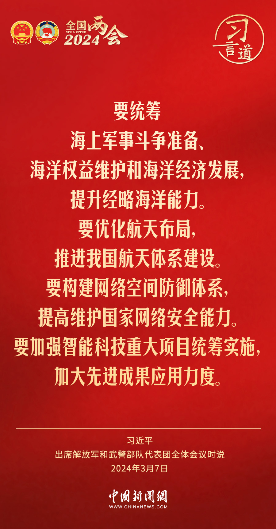中共中央总书记、国家主席、中央军委主席习近平7日下午出席十四届全国人大二次会议解放军和武警部队代表团全体会议,习近平强调——