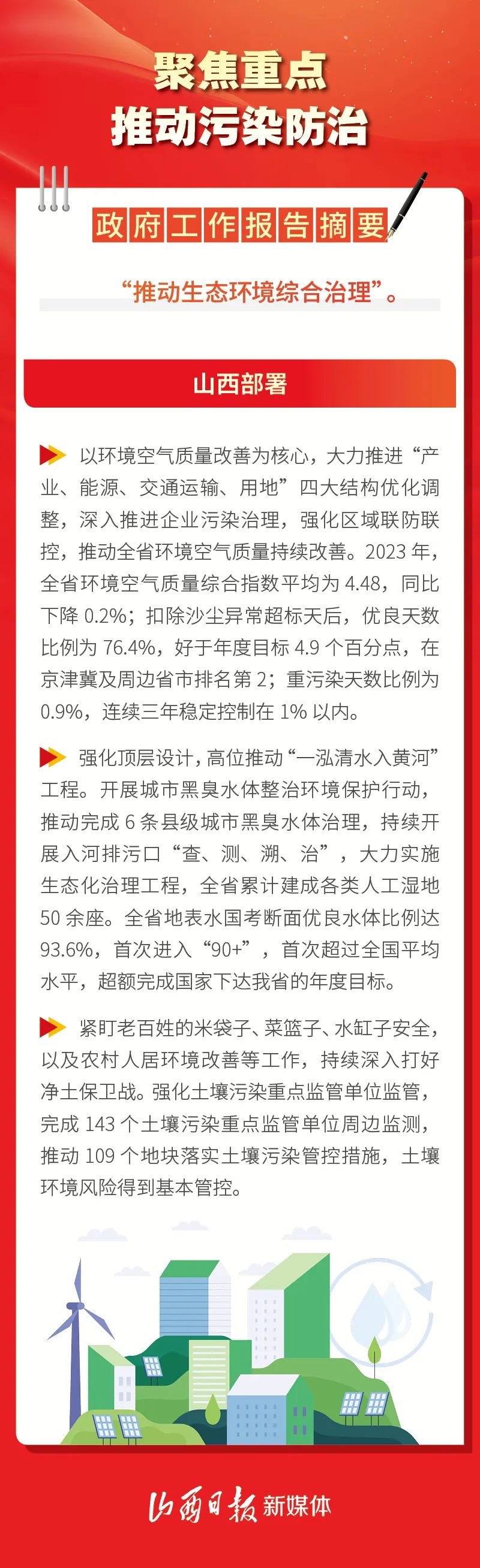 今年的政府工作报告指出,要加强生态文明建设,推进绿色低碳发展。山西坚持减污降碳协同增效,全方位、全地域、全过程开展生态环境保护,持续深入打好三大污染防治攻坚战,不断推动生态环境质量再上台阶,为三晋大地带来更多的蓝天白云。
