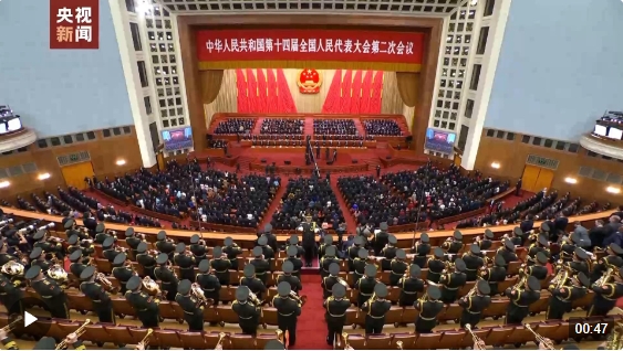 3月11日下午3时,十四届全国人大二次会议在北京人民大会堂举行闭幕会。中共中央总书记、国家主席、中央军委主席习近平等党和国家领导人出席闭幕会。