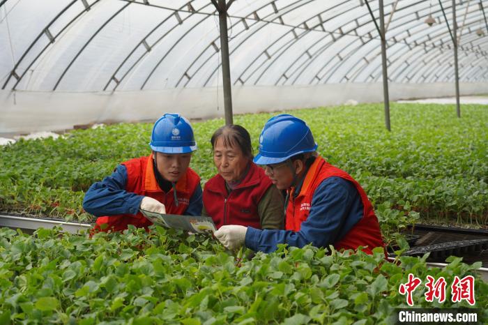 山西吕梁,供电人员走进蔬菜大棚,向村民宣传安全用电知识。国网山西省电力公司供图
