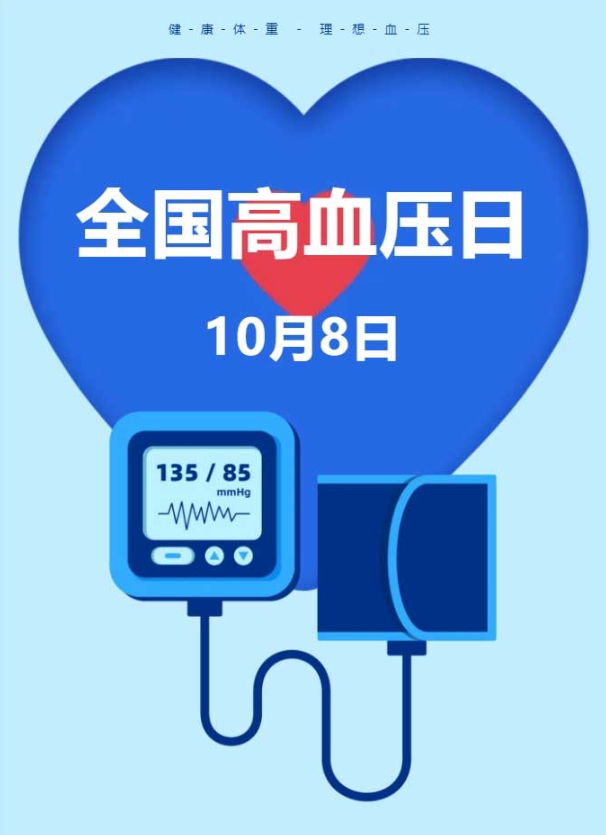 2024年10月8日是第27个全国高血压日,主题是“健康体重,理想血压”,提醒大家,做好自我血压管理,有效控制高血压危险因素。