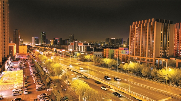 市城区龙湖大街夜景。 记者 张浩亮 摄