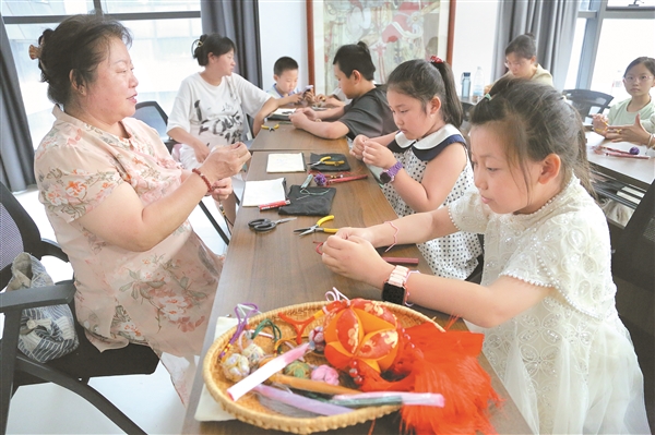 制作太平绣球。记者 程婧 摄