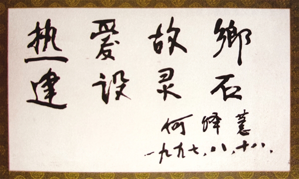 1997年,何泽慧院士回乡探亲,为灵石题词。选自《何泽慧影记》