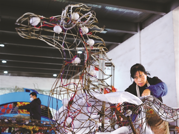 山西晋商彩灯文化有限公司生产车间内一派繁忙