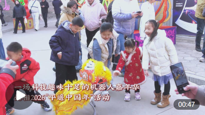 骏马踏春来,科技焕新彩。春节假期,山西平遥古城红灯高挂、烟火升腾。在古城西大街原棉织厂院内,一场机器人嘉年华亮相2026“平遥中国年”。