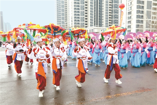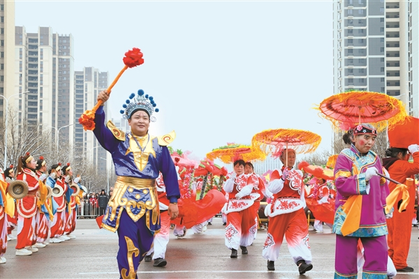3月2日,农历正月十四,榆次区2026年社火活动展演在市城区文华街精彩上演。