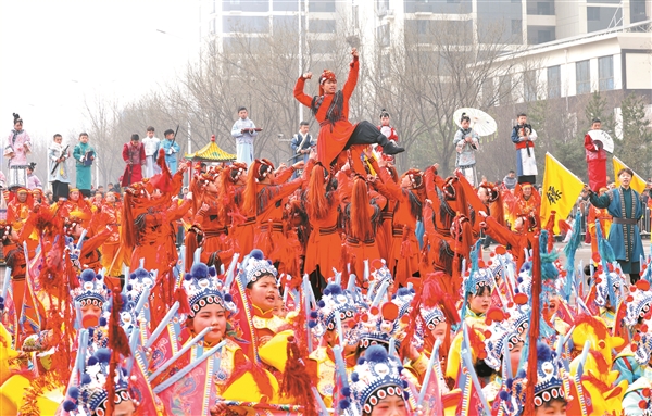 平遥小竹马奔腾而来,120名少年策马扬鞭,稚气未脱却气势十足。孩子家长李莉莉笑着说:“孩子们从小接触晋商文化、社火文化,把‘汇通天下’的精气神跳出来,就是最好的传承。”铿锵鼓点里,有历史回响;翩跹舞姿中,是文脉绵延。