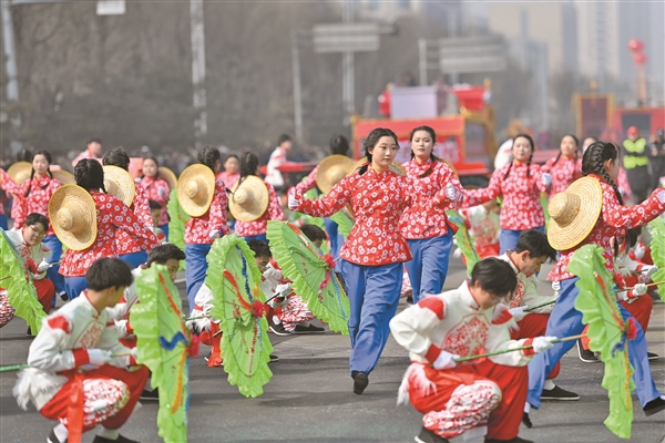 阳光洒落,鼓乐飞扬,一张张笑脸在人群中绽放,一声声喝彩在空气中回荡。没有距离,不分彼此,市民与游客相融,老人与孩子同乐,传统与现代交织,把元宵佳节的喜庆氛围推向高潮。大家在热闹中感受民俗魅力,在欢聚中共享发展成果,在喝彩中寄托对未来的美好期盼。