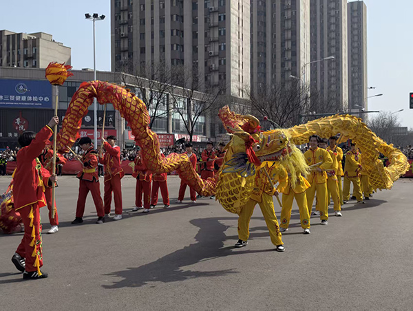 观众的喝彩声此起彼伏。看,龙凤镇的表演惊险刺激,杂技与狮子相映成趣,金色的长龙在空中翻腾;张兰镇的《万马奔腾》气势如虹,霸王鞭清脆作响,再现了“驰骋”的豪迈;西关街道的锣鼓队虽然只有70人,但铿锵的节奏敲出了西关人的热情。