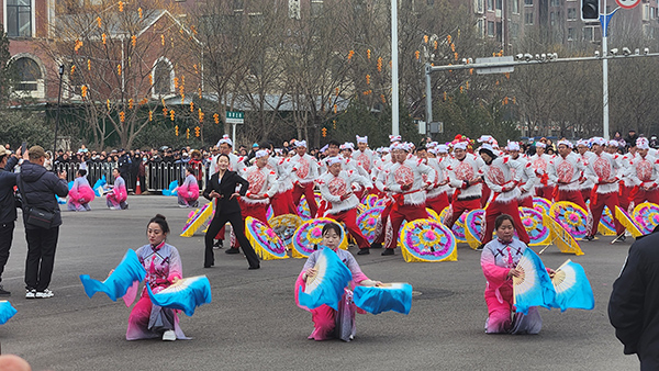 当天上午,伴随着激昂的鼓点,义安镇近800人的庞大队伍率先登场,彩车徐徐前行,锣鼓车声震四方,秧歌队彩扇翻飞,瞬间点燃了现场气氛。紧随其后,北关街道的表演队意气风发走来,恰似八骏奔腾,将新春的祝福洒满长街。