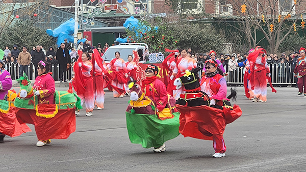 沿街两侧,早已挤满了前来观演的市民,大家笑意盈盈,举着手机记录精彩瞬间,不时为精彩表演鼓掌喝彩,欢声笑语与锣鼓声、歌舞声交织在一起,响彻街巷。