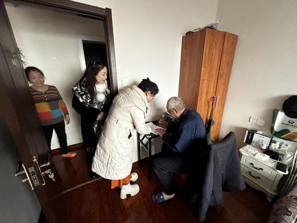 郭贵玉老人是晋中市保贵药品销售店(个人独资)的投资人,因年事已高、行动受限,无法前往服务窗口办理营业执照注销手续,家属也对烦琐流程束手无策。获悉情况后,全代办服务部第一时间启动特殊群体绿色通道,携带移动办公设备、注销表单等材料,上门为老人提供“一对一”全流程代办服务。代办人员在老人家中耐心完成身份核验、信息核对、表单填写、签字确认等关键环节。全程细致的讲解、温和的服务,让老人足不出户就解决了烦心事。