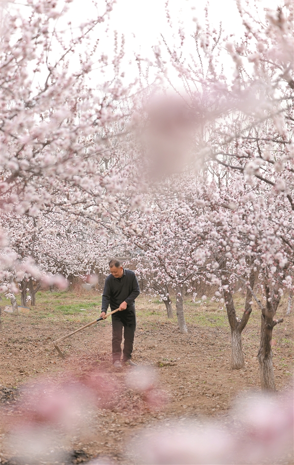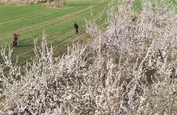 介休市洪山镇崇贤村的采摘园内杏花迎春绽放
