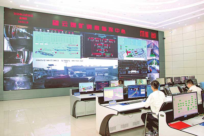 兰花集团望云煤矿,工作人员正在通过调度大屏实时监控井下各作业现场。
